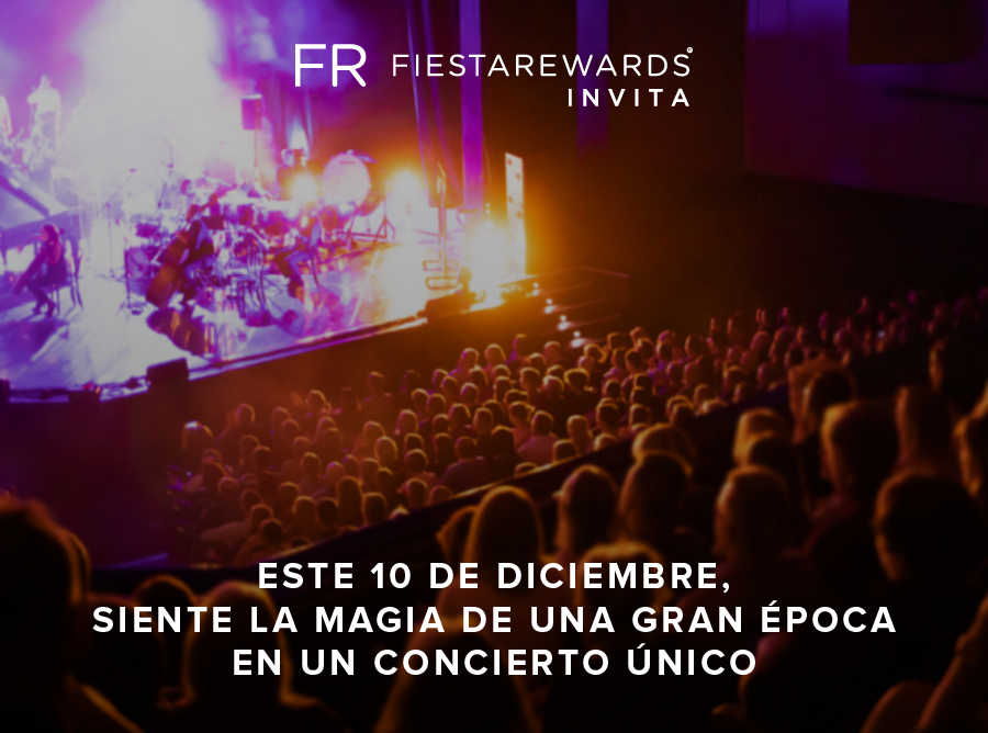Promoción válida para redimir del 20 de septiembre al 9 de diciembre de 2025 al *8585. Promoción exclusiva para socios Fiesta Rewards. Redime 55,000 puntos Fiesta Rewards por un pase doble en zona Preferente A para el concierto del 10 de diciembre del 2025 en el recinto que se ubica en Avenida Paseo de la Reforma 50, Polanco V Sección, Alcaldía Miguel Hidalgo, Código Postal 11560, Ciudad de México, a las 20:30 horas. Limitado a 10 pases dobles en zona PREFERENTE A. No incluye alimentos ni bebidas ni consumos en el recinto. No incluye propinas ni estacionamiento. No incluye traslados al recinto. No incluye vuelo ni hospedaje. Cualquier consumo adicional deberá ser cubierto por el socio. La promoción es exclusiva para socios Fiesta Rewards. No participan empleados o colaboradores de Grupo Posadas, S.A.B. de C.V. (“Posadas”) ni ninguna empresa afiliada o subsidiaria de Posadas. Posadas no garantiza la realización del evento en las fechas y lugar señalados, toda vez que el realizador es externo a Posadas. No participarán quienes tengan cuentas Fiesta Rewards suspendidas o canceladas. No aplica para cuentas corporativas, empresariales o grupales. Los socios deberán hacerse responsables de su traslado al evento. Posadas se reserva el derecho de modificar los presentes términos y condiciones. Los pases no son intercambiables ni reembolsables en dinero ni en puntos Fiesta Rewards. El socio es responsable de mantener sus datos actualizados en su cuenta Fiesta Rewards. Los boletos serán enviados vía aplicación de TicketMaster al correo electrónico que el socio indique como ligada a su cuenta personal de TicketMaster. Los datos personales del socio Fiesta Rewards serán utilizados únicamente con los fines de identificación, contacto y entrega de los boletos. Para consultar el aviso de privacidad de Ticketmaster, visita el sitio https://www.ticketmaster.com.mx/h/privacy.html Responsable de la promoción: Grupo Posadas, S.A.B. de C.V., con domicilio en Av. Prolongación Paseo de la Reforma 1015, Torre A, piso 9, Colonia Santa Fe Cuajimalpa, Alcaldía Cuajimalpa de Morelos, Código Postal 05348, Ciudad de México. En caso de alguna queja, reclamación o comentario relacionado con esta promoción, comunicarte al teléfono 4431135841 en un horario de 09:00 a 20:00 horas de lunes a domingo.