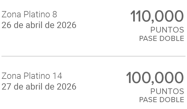 Promoción válida para redimir del 15 de diciembre de 2025 al 26 de abril de 2026 al *8585. Promoción exclusiva para socios Fiesta Rewards. Redime 110,000 puntos Fiesta Rewards por un pase doble en zona Platino 8 para el concierto de Pink el 26 de abril de 2026 en el Estadio GNP Seguros a las 21:00 hrs. Limitado a 15 pases dobles en zona Platino 8. Redime 100,000 puntos Fiesta Rewards por un pase doble en zona Platino 14 para el concierto de Pink el 27 de abril de 2026 en el Estadio GNP Seguros a las 21:00 hrs. Limitado a 5 pases dobles en zona Platino 14. Los pases se otorgarán a los primeros socios que rediman sus puntos, sin excepción. No incluye avión ni hospedaje. No incluye alimentos ni bebidas ni consumos en el recinto. No incluye propinas ni estacionamiento. Cualquier consumo adicional deberá ser cubierto por el socio. No participan empleados o colaboradores de Grupo Posadas, S.A.B. de C.V. (“Posadas”), ni ninguna empresa afiliada o subsidiaria de Posadas. Posadas no garantiza la realización del evento en las fechas y lugar señalados, toda vez que el realizador es externo a Posadas. No participarán quienes tengan cuentas Fiesta Rewards suspendidas o canceladas. No aplica para cuentas corporativas, empresariales o grupales. Los socios deberán hacerse responsables de su traslado al evento. Posadas se reserva el derecho de modificar los presentes términos y condiciones. Los pases no son intercambiables ni reembolsables en dinero ni en puntos Fiesta Rewards. Los boletos serán enviados vía aplicación de TicketMaster al correo electrónico que el socio indique como ligada a su cuenta personal de TicketMaster. Los datos personales del socio Fiesta Rewards serán utilizados únicamente con los fines de identificación, contacto y entrega de los boletos. Para consultar el aviso de privacidad de Ticketmaster, visita el sitio https://privacy.ticketmaster.com.mx/es/privacy-policy Responsable de la promoción: Grupo Posadas, S.A.B. de C.V., con domicilio en Av. Prolongación Paseo de la Reforma 1015, Torre A, piso 9, Colonia Santa Fe Cuajimalpa, Alcaldía Cuajimalpa de Morelos, Código Postal 05348, Ciudad de México. En caso de alguna queja, reclamación o comentario relacionado con esta promoción, comunícate al teléfono 443 113 5841 en un horario de 09:00 a 20:00 horas de lunes a domingo. |